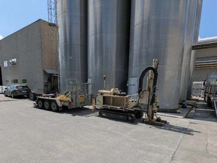 The site is located in an industrial estate, meaning access is straightforward. The contaminated area is partly underneath two buildings, where it’s not accessible. The area for the pilot is located just outside the building, in the section of the contamination that spreads to the adjacent site.